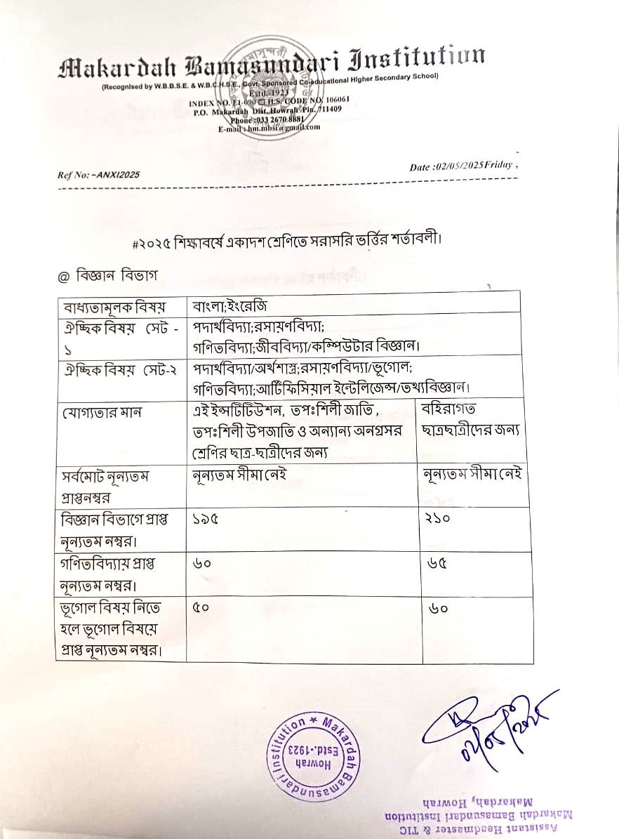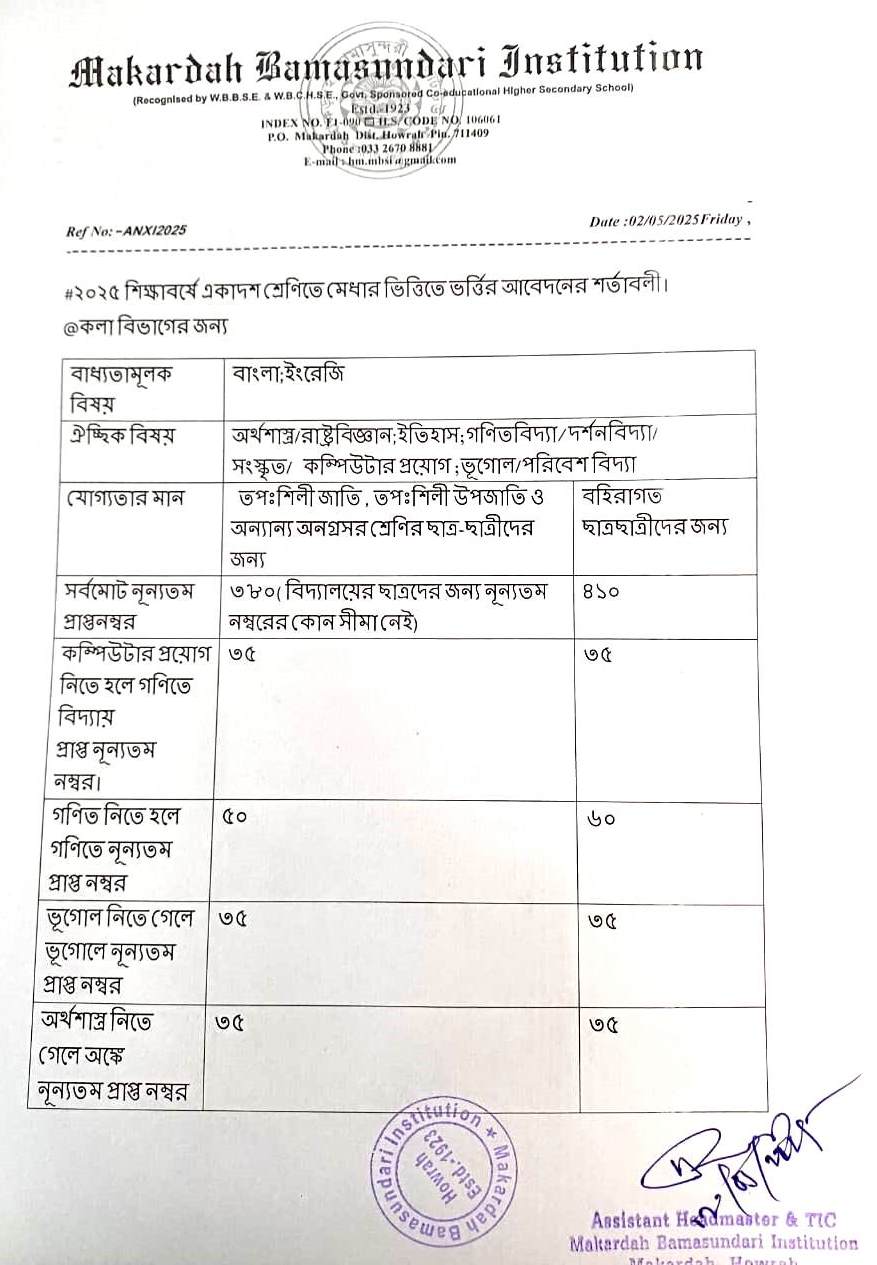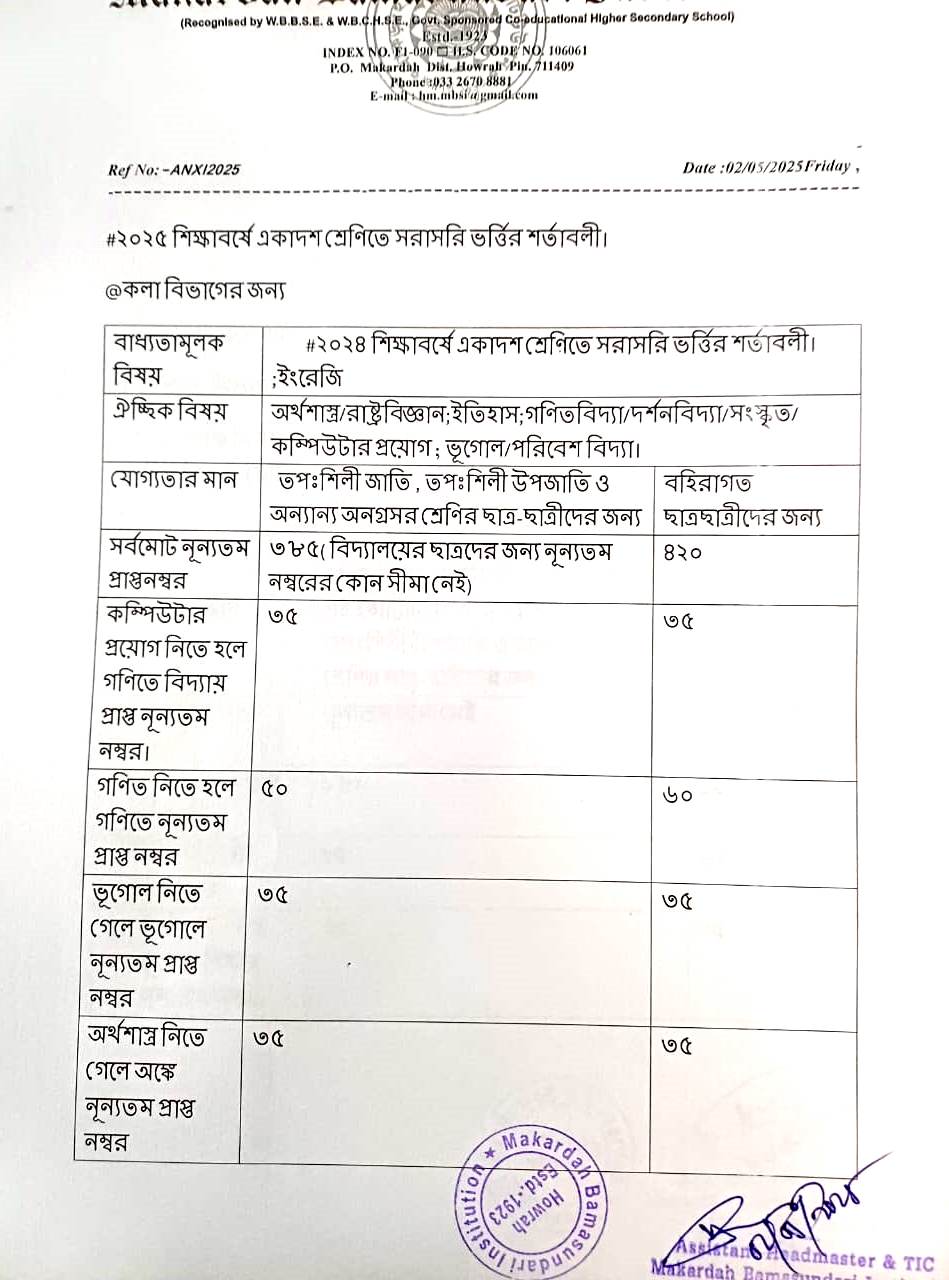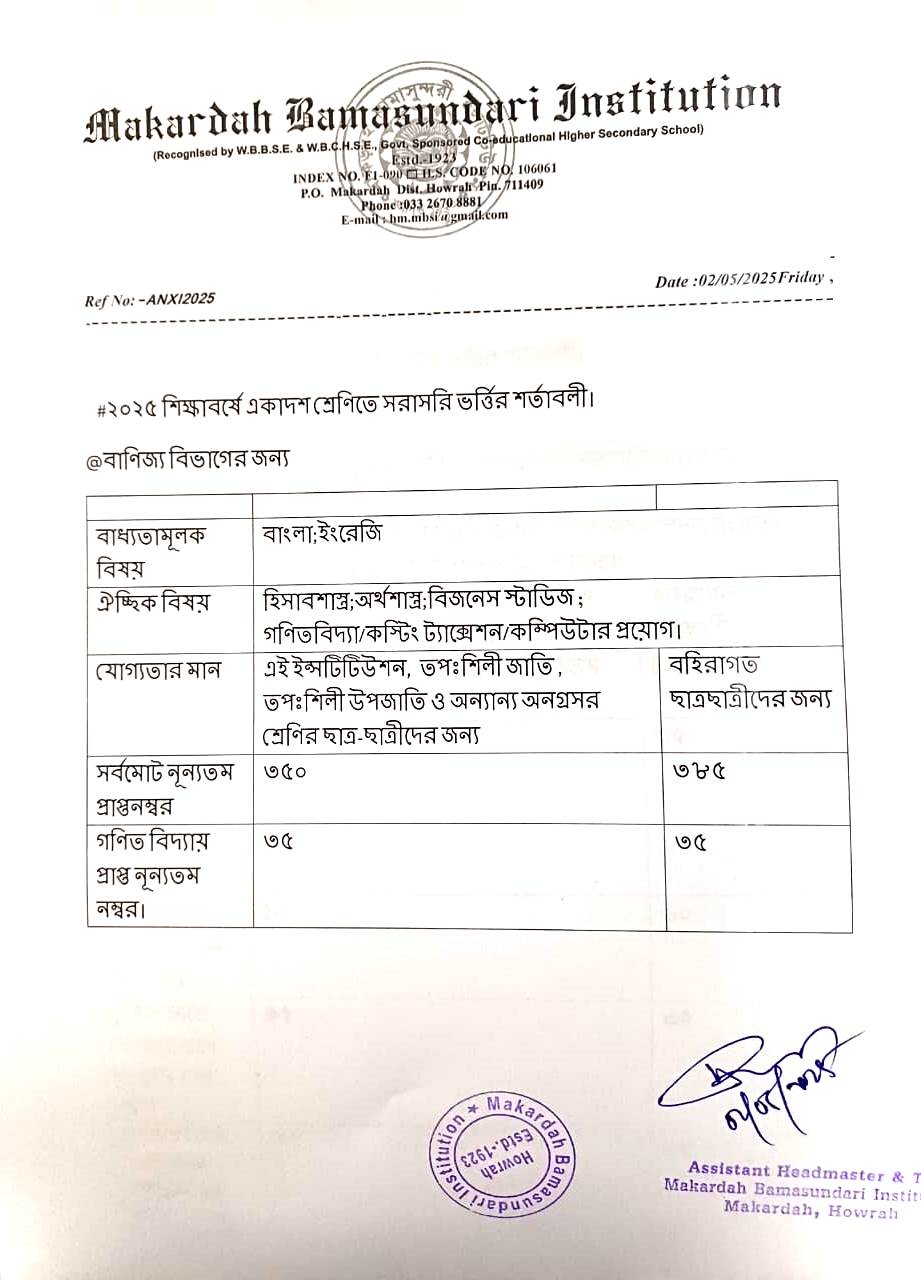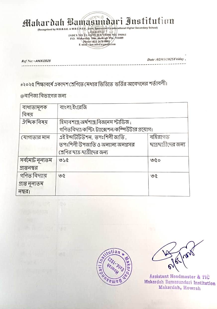 N.B.:- There is no bar in mathematics for applying Commerce. Those who are selecting Computer Application paper in Commerce Stream, must obtain 35 marks in mathematics.